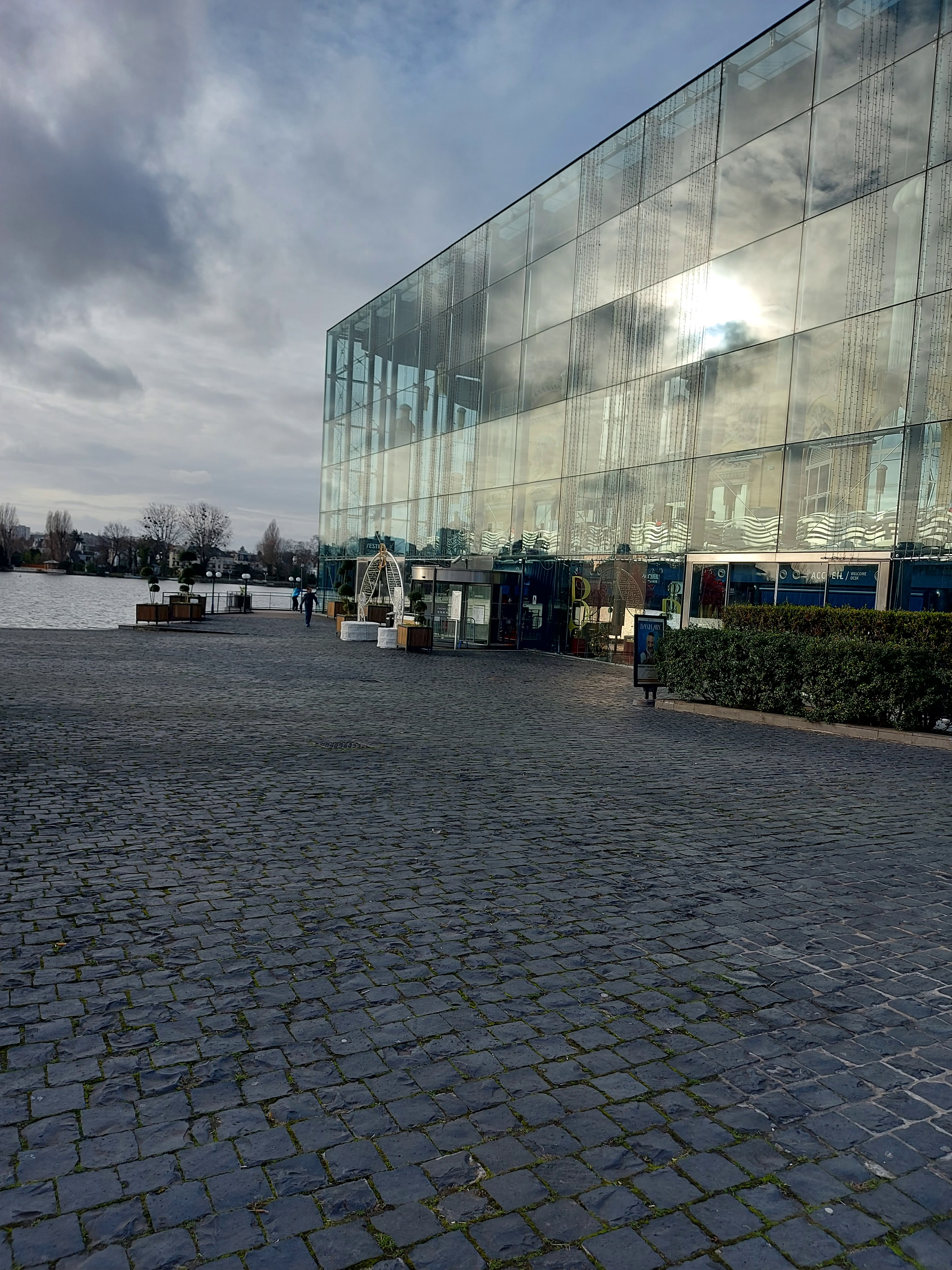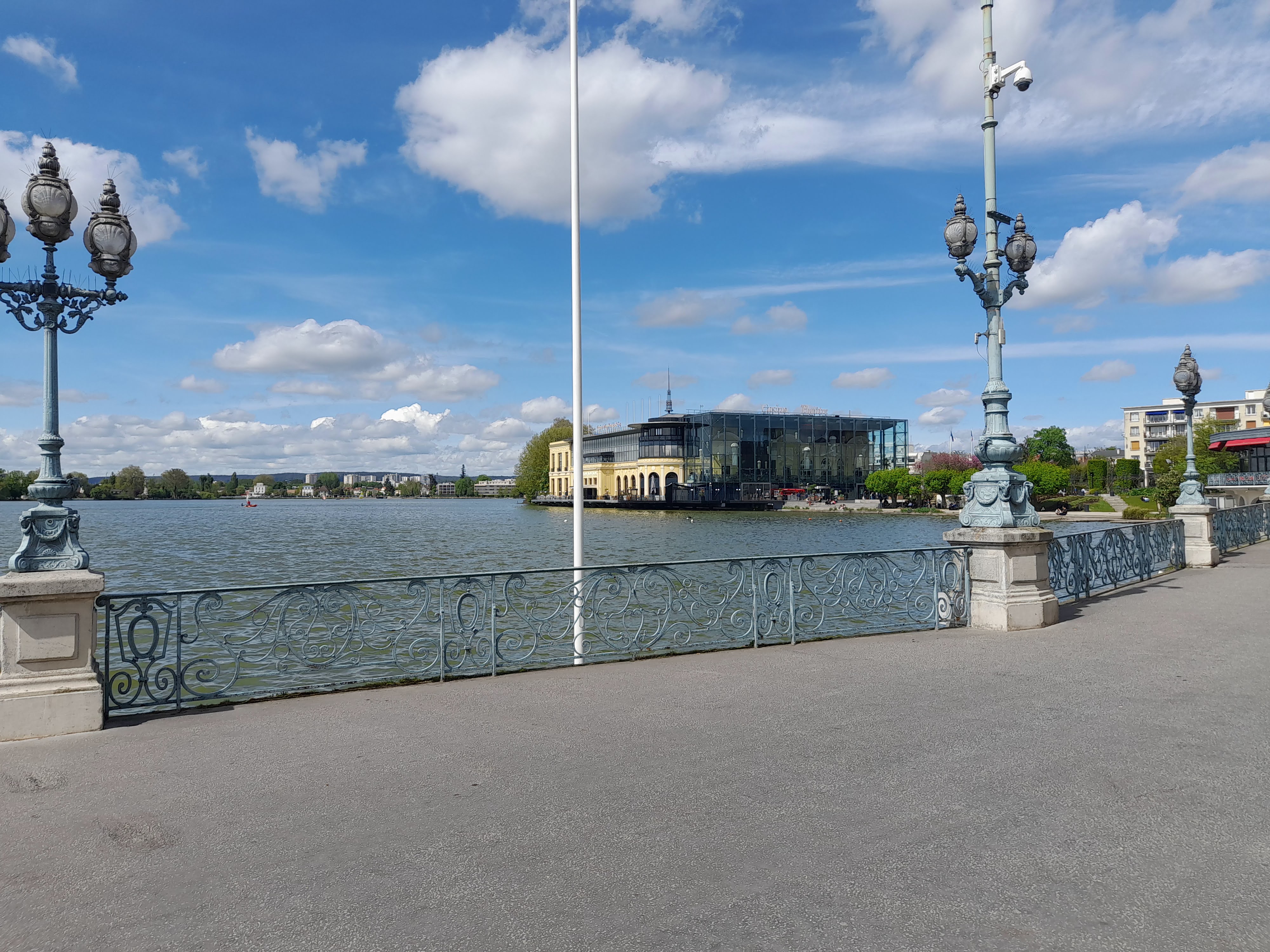 J aime l architecture de ce casino avec sa façade mêlant le verre et la façade d origine. Donnant sur le lacs et ses très jolies maisons. Nombreux parkings.