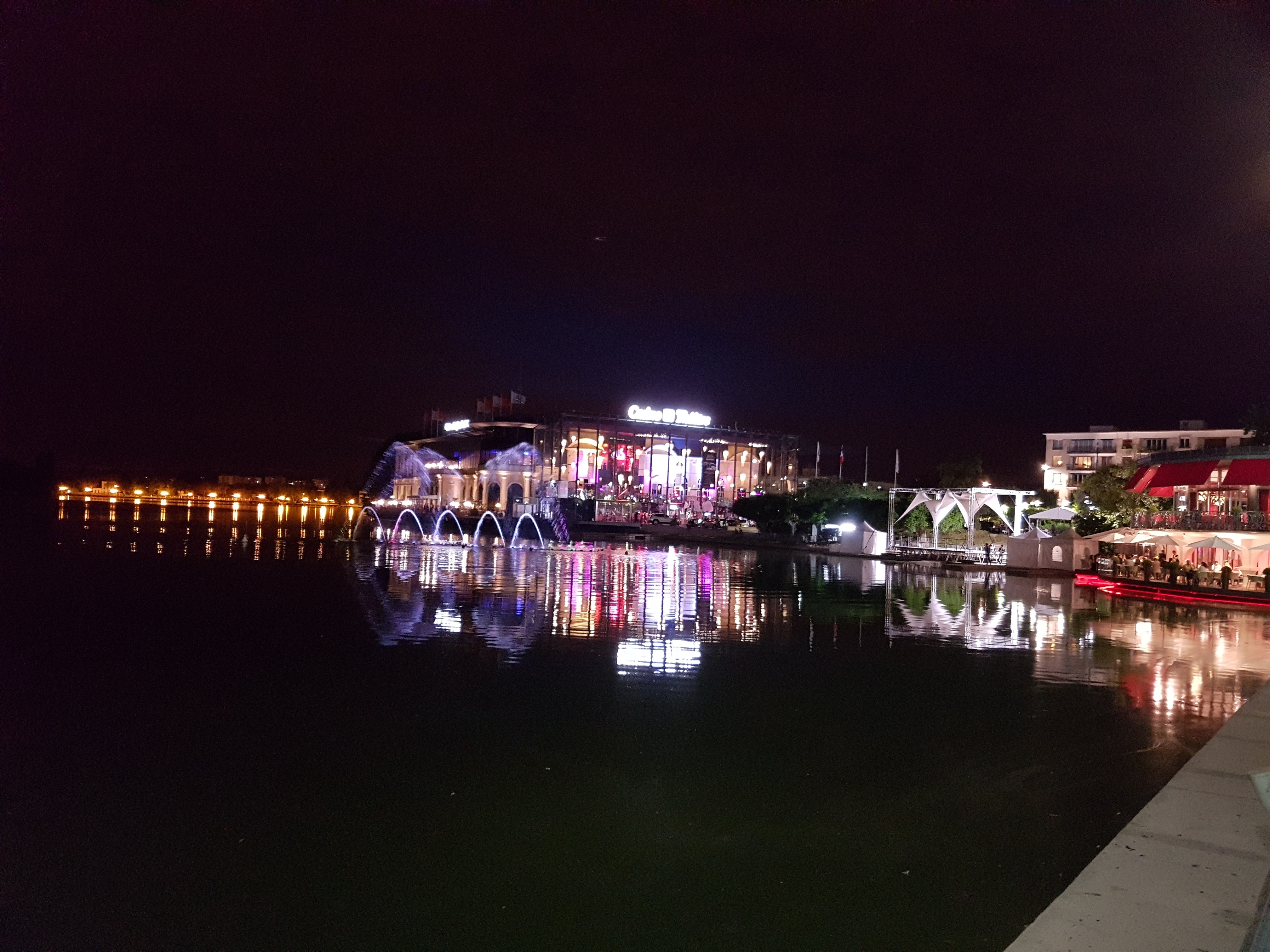 Très belle soirée au casino avec 2 restaurants à dispo à l'intérieur (dont qu'il vaut mieux réservé). L'entrée au casino est d'un peu plus de 15euros. Le casino est Réparti sur 2 niveaux avec au premier niveau les tables de jeux et le restaurant plus gastronomique reservable en parti au bord du lac et au second niveau les machines à sous et en son centre l'équivalent d'une brasserie avec des plats salés et sucrés.