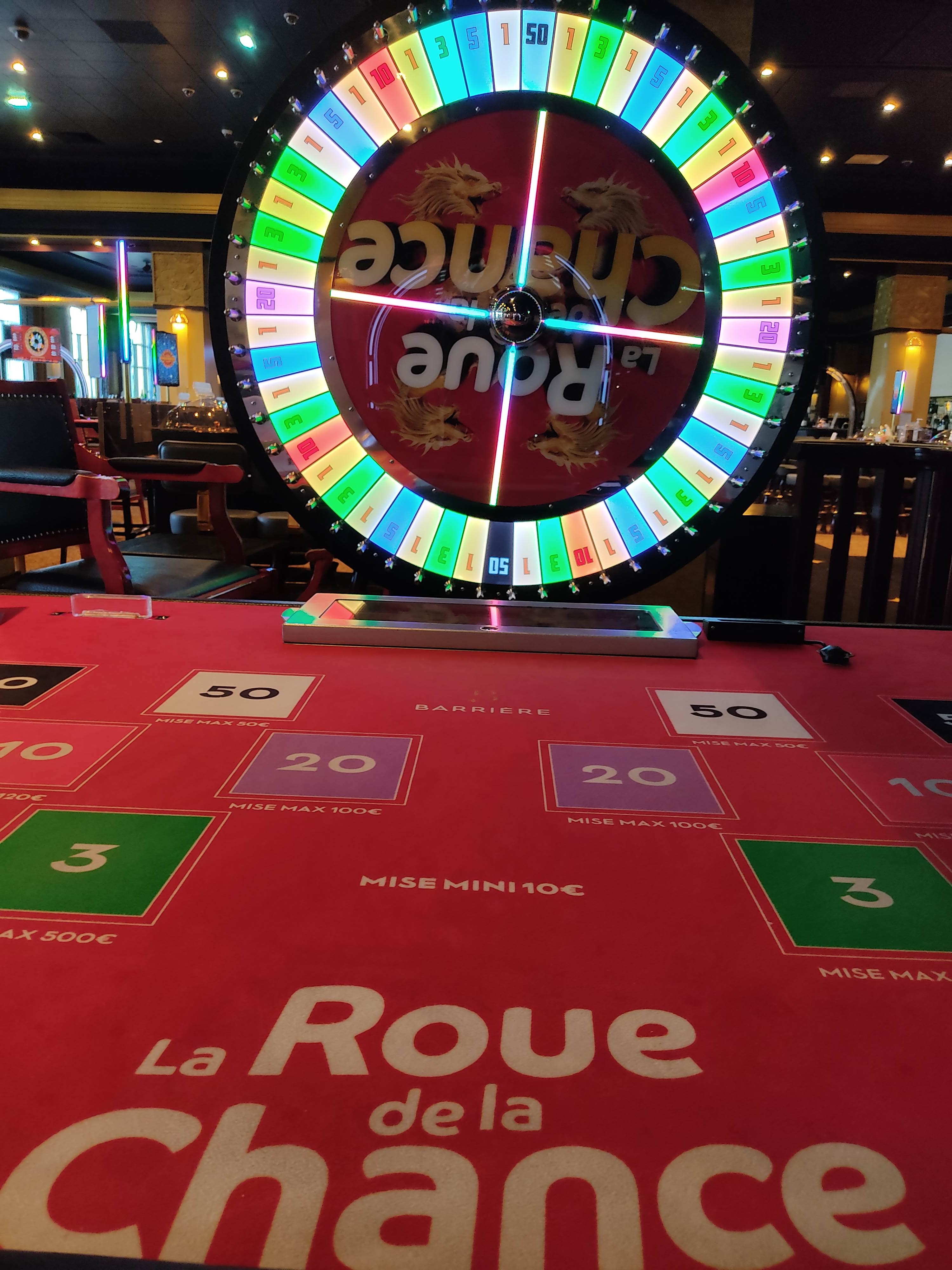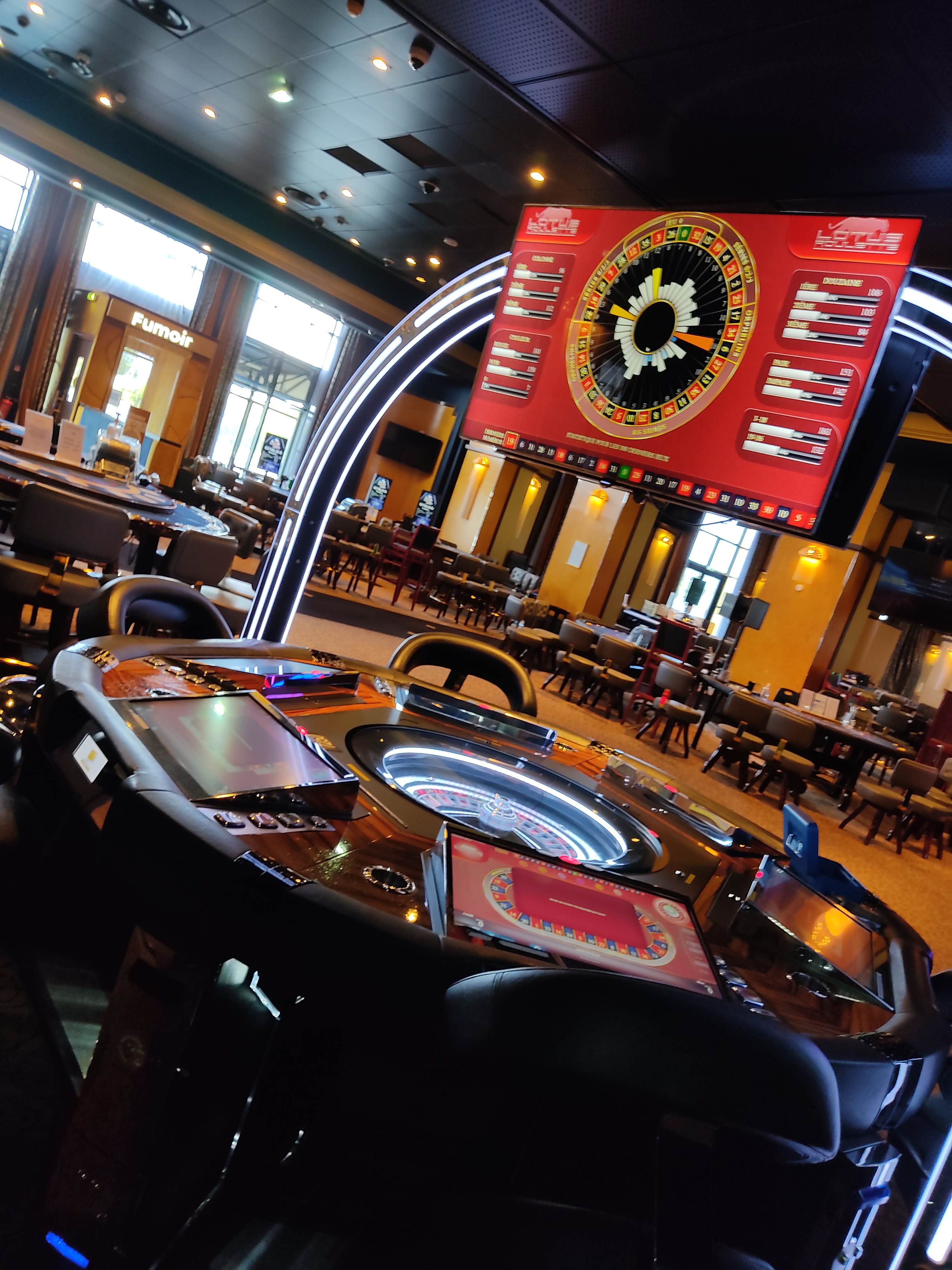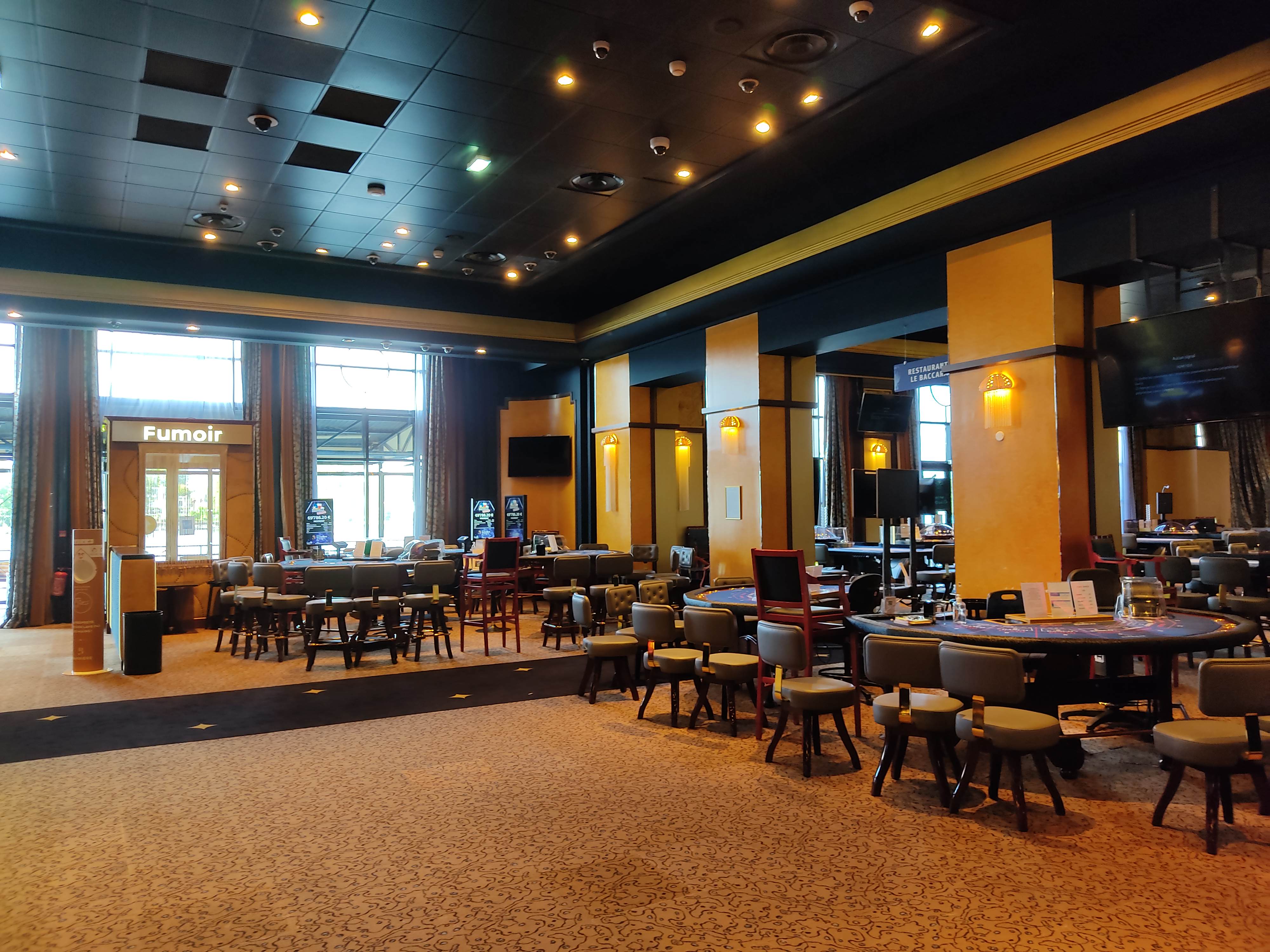 Mon impression sur l’établissement est mitigée. Cela commençait assez bien. Le cadre est somptueux. Le restaurant est bon. Cependant, l’ambiance était quand même un peu morose (c’était un soir de semaine). Il n’y avait aucune animation ni vraie ambiance musicale. Les minimums de mises notamment au black jack sont très élevés. aucune place n’est disponible sur la table à 50.. L’ambiance et la population à table ne donnait de toute façon pas très envie. En même temps rien d’anormal vu les minimums de mise peut il y avoir autre chose que des mecs pas très nets ? Du coup et malgré un budget de 1000 euros on passe notre soirée face à des écrans. Il y en a absolument partout et cela nuit à l’esprit du lieu. Assez loin des soirées d’anthologie que j’ai pu passer dans d’autres casinos du groupe comme Deauville. Je reviendrais peut être mais en week-end. En semaine ça ne vaut vraiment pas le coup.