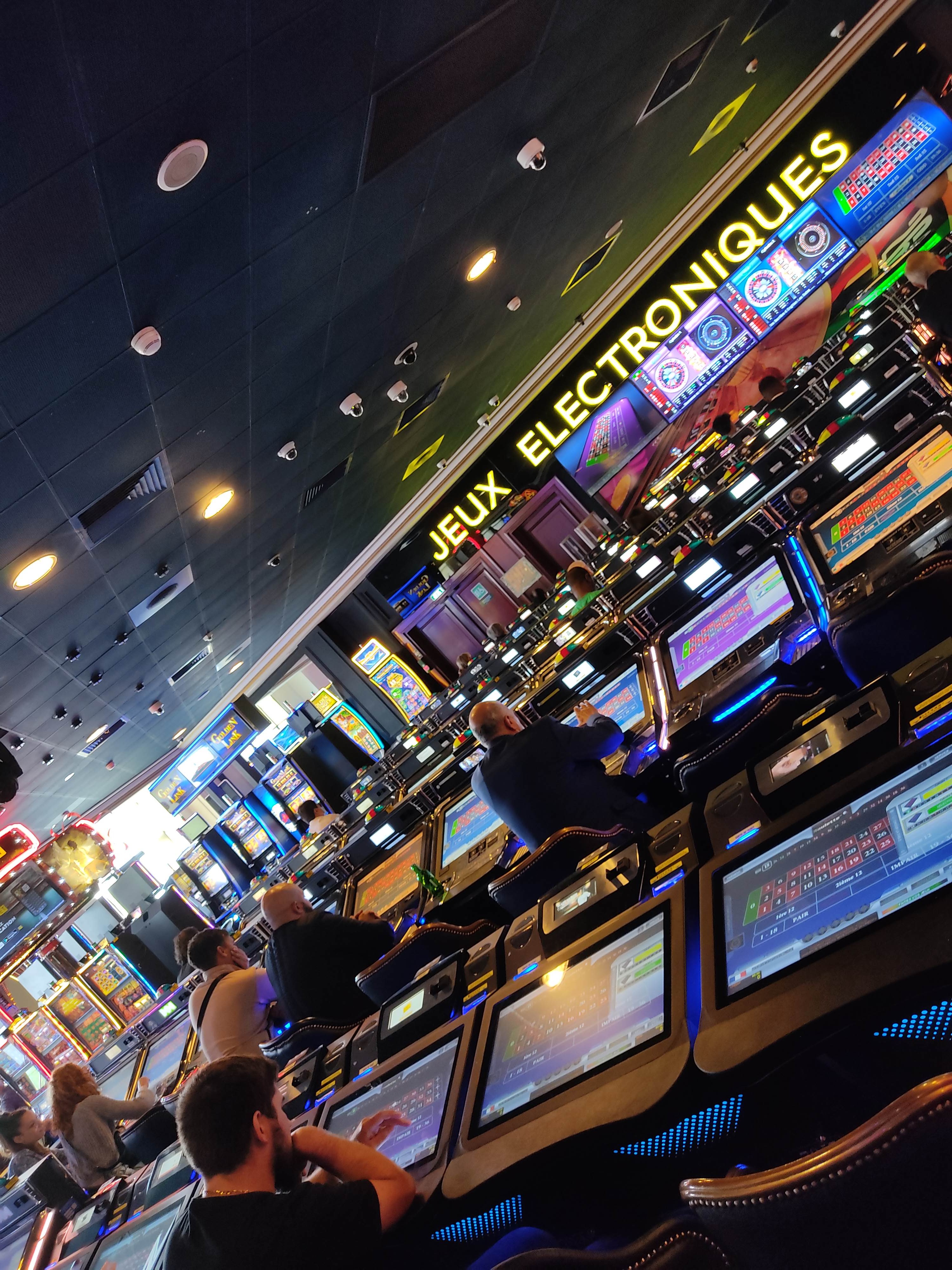 Plus une fête FORAINE qu'un casino. Un samedi soir. Nous avons mangé au Baccarat, 267€ pour 4, cela ne les vaut pas, clairement. Entrée fade sans saveur pour le ceviche. Pour le reste du repas c'était correct mais chère pour ce que c'était. On nous retire les assiettes alors que nous n'avions pas fini. L'incident s'est produit 3 fois pendant le repas et idem pour une table un peu plus loin. Trop de monde qui s'agite autour de la table. Les serveurs qui serrent les mains et font la bise aux clients. C'est familial. Musique trop forte, on avait du mal à se parler. Quant aux Casino, le mot Casino a perdu son âme. Le style vestimentaire c'est t-shirt, sweat à capuche, jean, jean sous les fesses pour montrer son caleçon. Pour certaines femmes c'était fuseau, combi moulante au sens 1er et 2eme. Je me suis cru dans un lieu de racolage. Cela faisait plus fête foraine. Un membre du personnel s'est fait envoyé balader par un type qui fumait en pleine allée centrale. On a senti que cela aurait put tourner en bagarre. Honnêtement, j'avais constamment mes mains dans les poches par crainte. Je ne me suis pas du tout senti en sécurité. Moi qui aimait le casino, merci vous m'avez sevré !!!