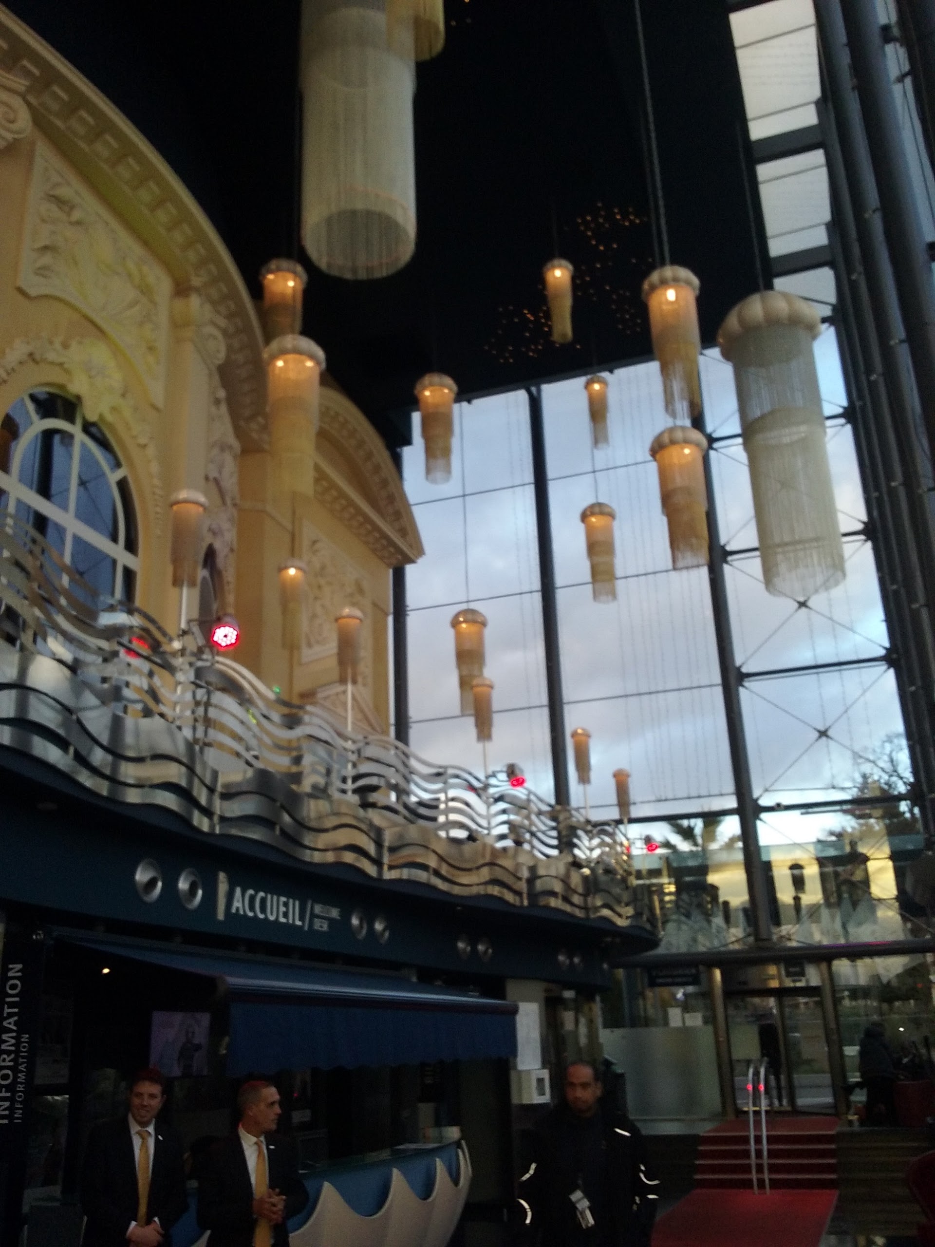 Très beau en arrivant mais déçu en.arrivant obliger de mettre ça veste au vestiaire 16 euros l entrée j ai jamais vu ça et pourtant même sur Monaco on ne paye pas l entrée ou alors c est pour voir la structure et les décors à l intérieur ce qui n est pas le cas ici