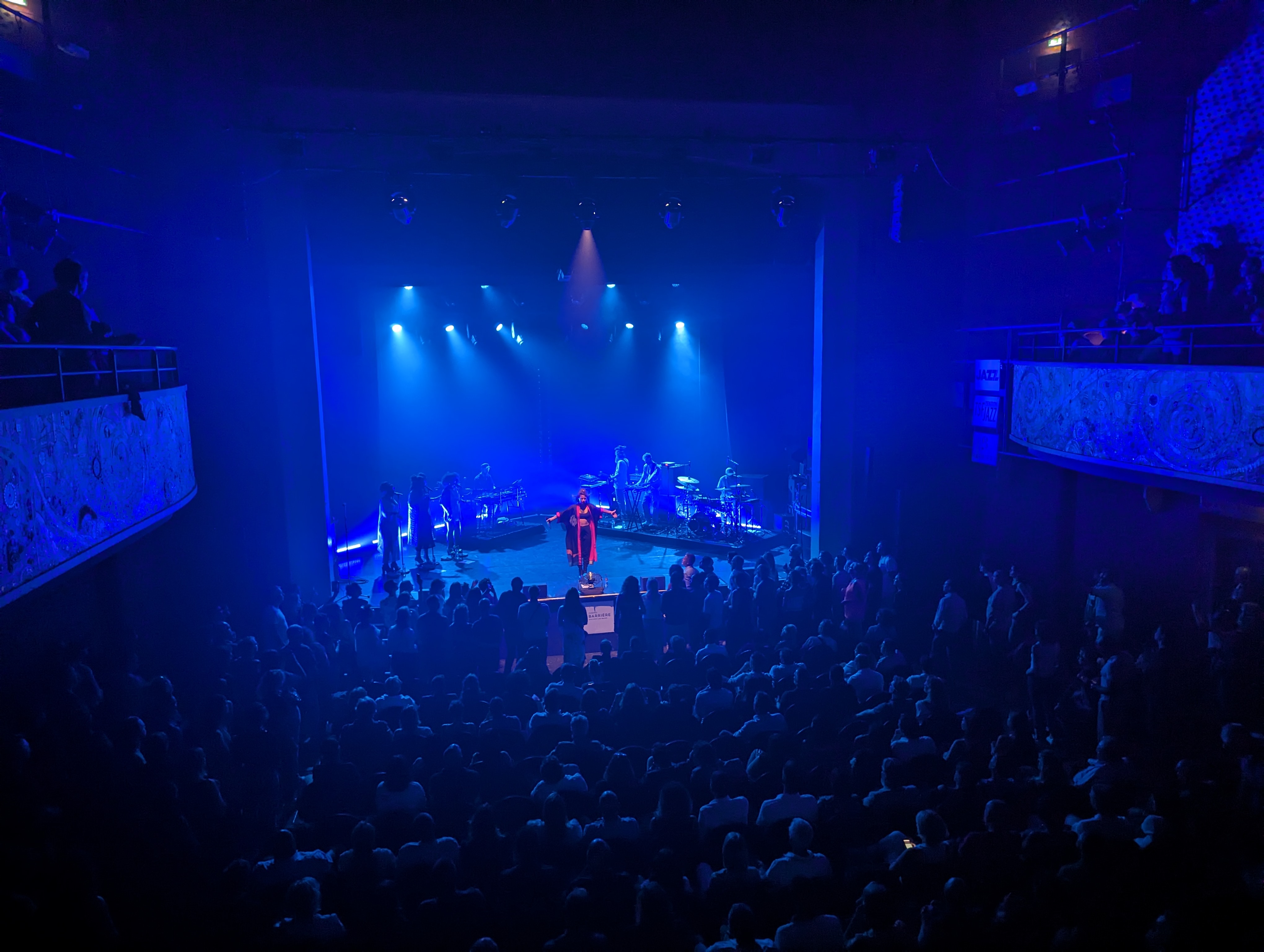 Vu la salle de théâtre pour un beau concert mais tout assis, ça ne va pas. Un concert typiquement fait pour danser et se déhancher, une fosse serait bien plus adapté. Pour le Barrière Jazz festival Enghein, penser à faire une fosse !!! Les concerts assis ne sont pas pour toutes sortes de musique. Bonne acoustique de la salle. Manque également un bar !!! L'accès au bar du Casino étant fermé, impossible d'avoir une bouteille d'eau, ou autre boisson.