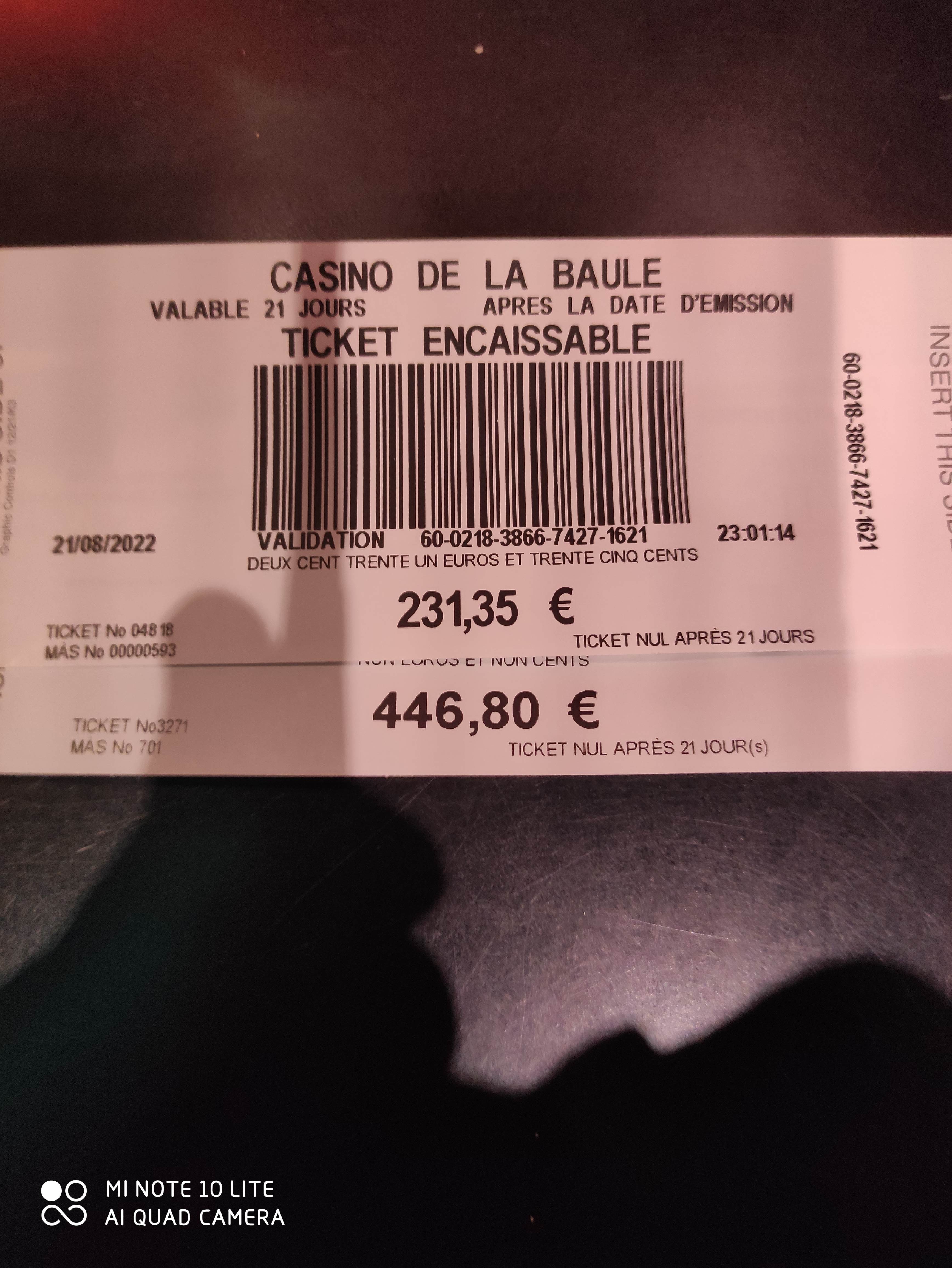 Expérience mitigée. J'ai perdu 150€ au casino mais j'ai trouvé l'amour dans ce casino. Je suis reparti accompagné