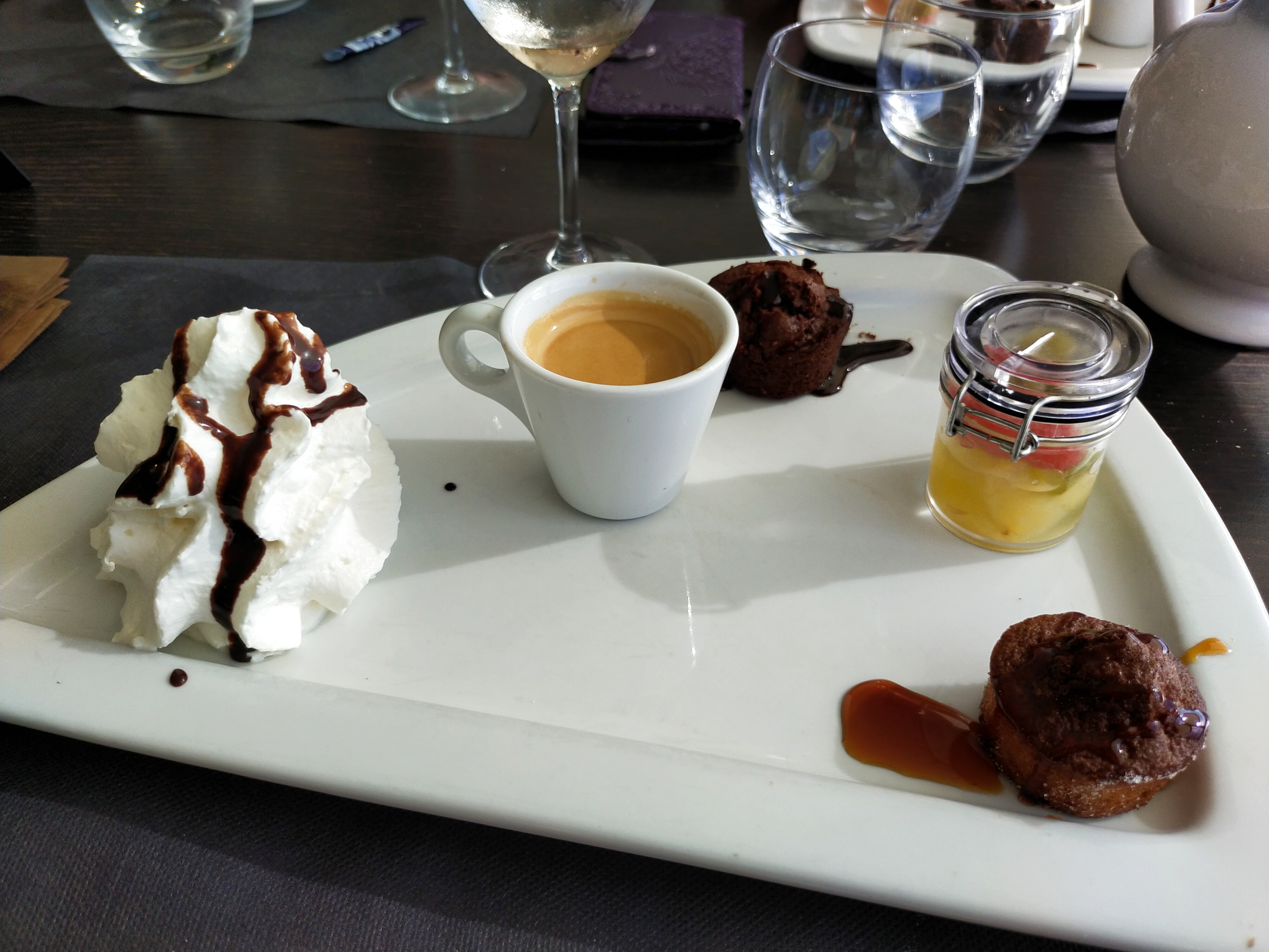 Très bon accueil, Americano ;-) tres bien, moules au cury et roquefort, café gourmand Très bon. La brestoise.