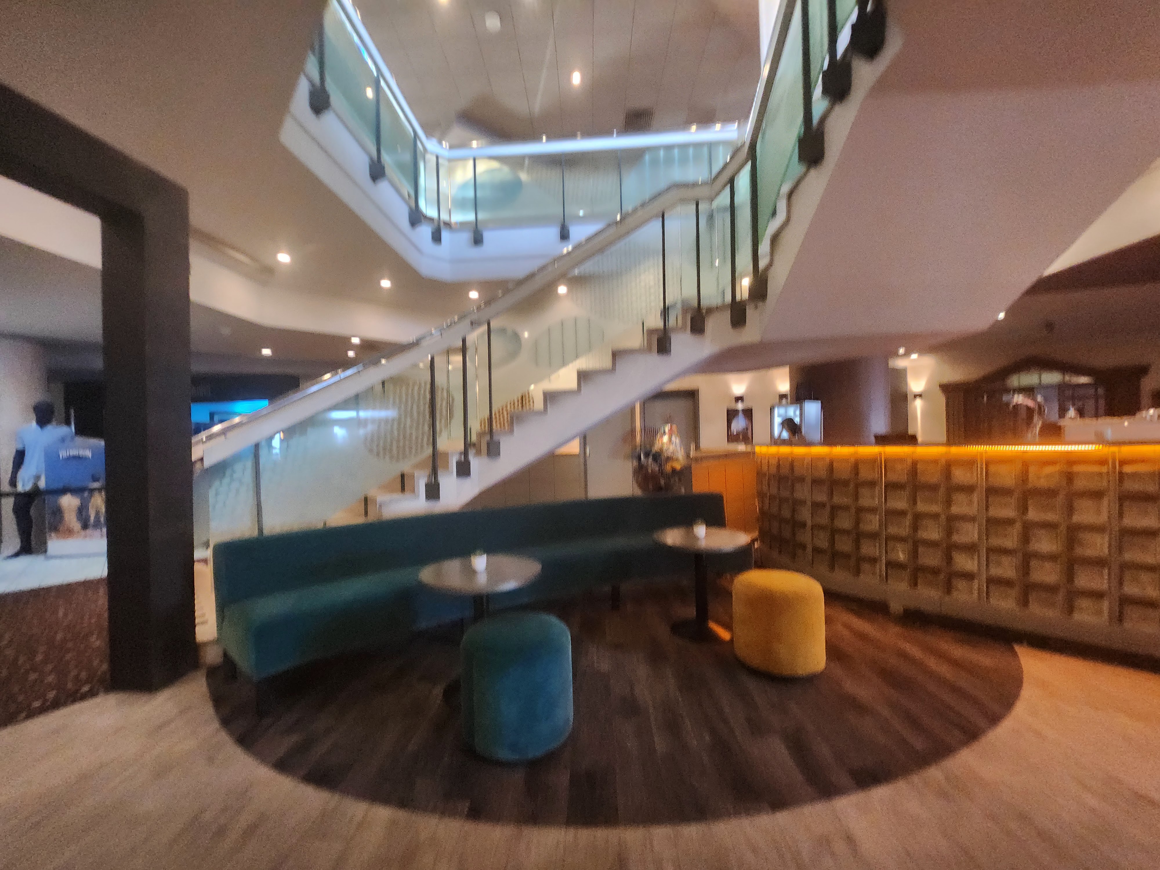 En raison de la pandémie le bar est fermé et il n'y pas de distributeur d'eau ni de café. Donc vous jouez sans boire. Et l'eau dans les toilettes est réglé sur chaud. On a peu l'impression d'être pris pour des pigeons.