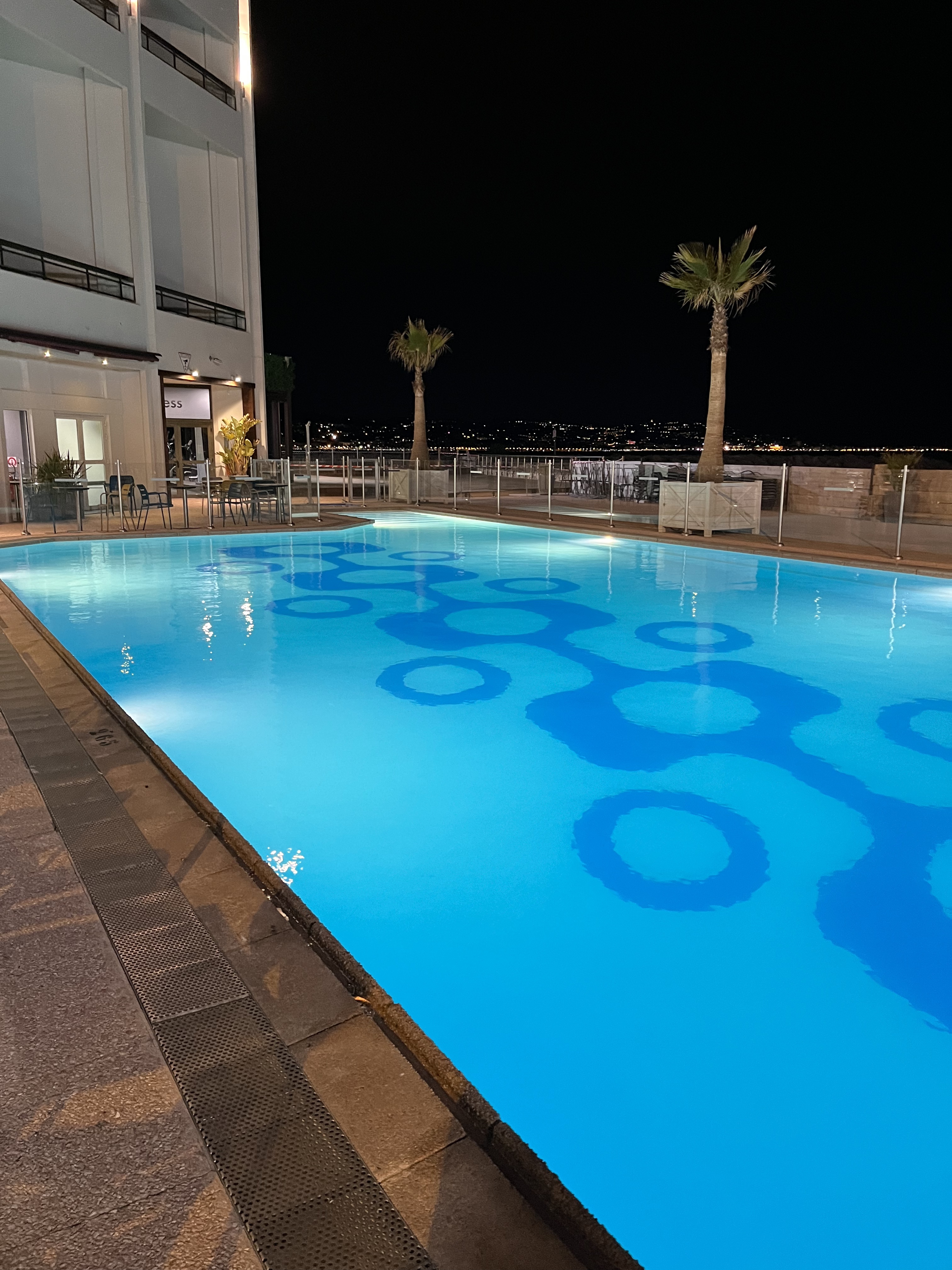 Accès simple-bon acceuil-calme-avec jolie piscine qui respecte l'espace, belle vue, balcon confort. clientèle diverses et respectueuse, quelques congrès parfois un peu bruyant en hiver..l'agencement du restaurant et du bar ne m'a pas totalement convaincu. Il manque des plantes...fleurs bouquets etc. Les commodités sont spacieuses et propres. La sécurité discrète. Quelques oeuvres d'art intéressantes parfois. Pour ma part, le casino à l écart reste une attraction, seul l' escalier qui conduit au casino est lui d un mauvais design avec miroirs et chaînettes. Un lieu assez cosmopolite somme toute plutôt rassurant et pratique. Gardiennage voiturier point Cb bars casinos...Prix des chambres justifiés vue mer plage privé et piscine. Possible 🙆 retour.