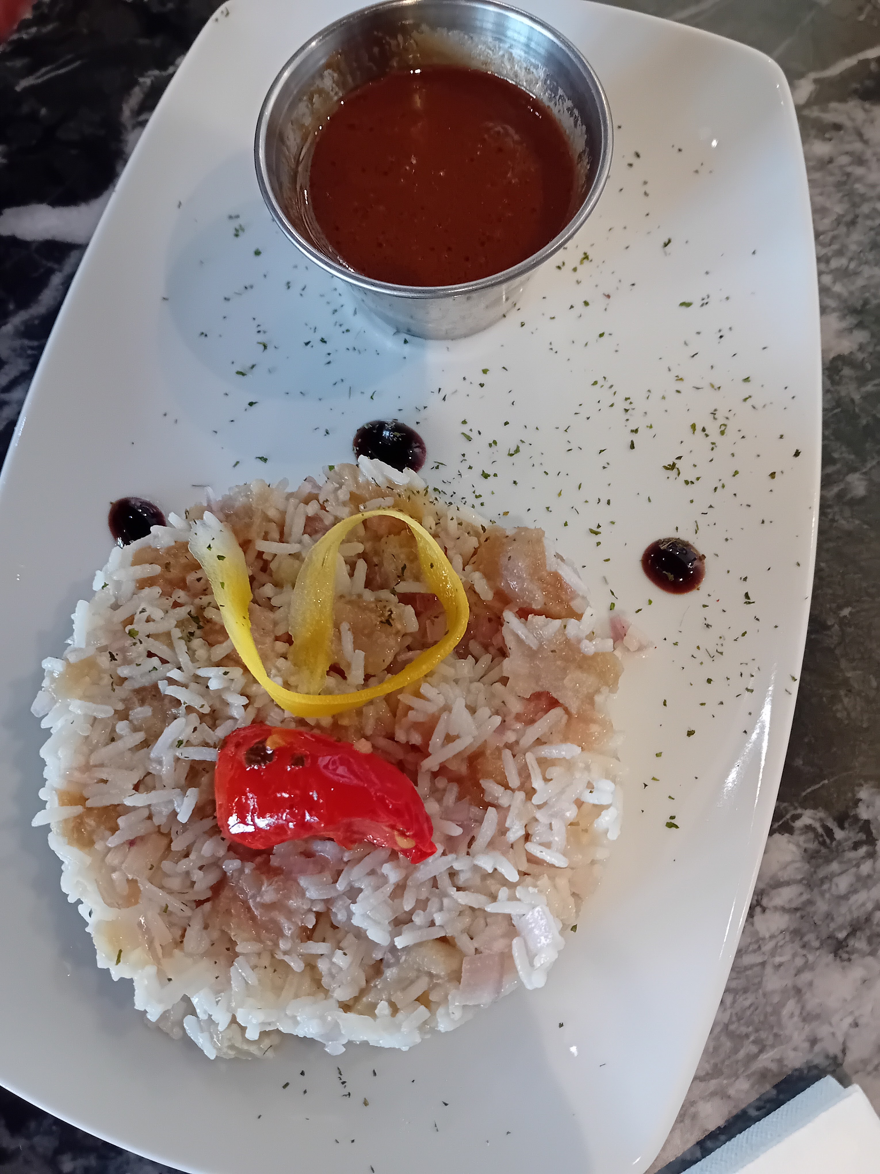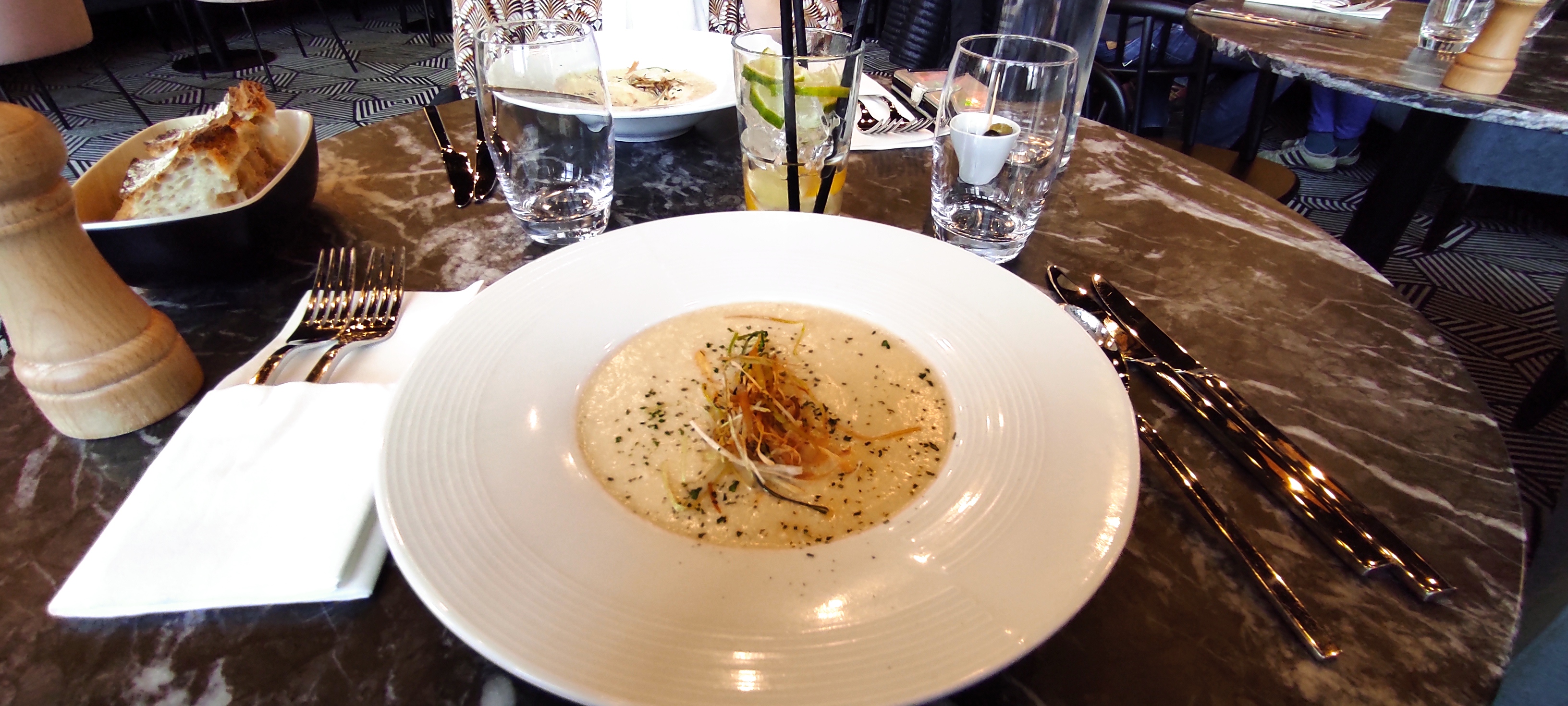 Le serveur à été adorable ! Par contre la table à été déçue de la cuisine... Falafels froides et seches sans goût... Le risotto pas bon du tout, poisson pas de goût non plus.. Mais bon accueil