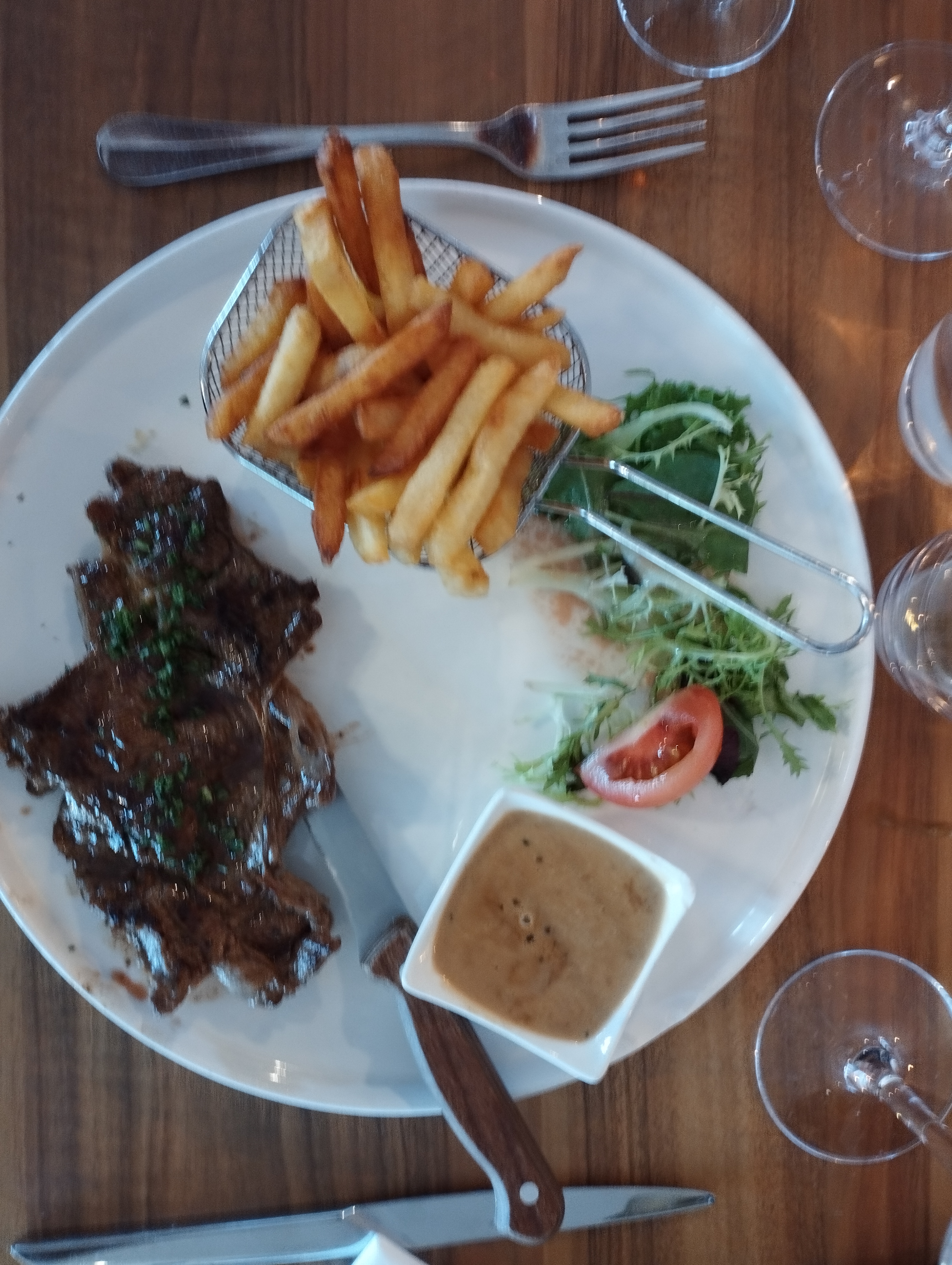 Repas à la verrière, très bon rapport qualité prix .nous nous sommes régalés Une mayonnaise maison serait un plus et la moutarde dans un petit pot présenterait mieux