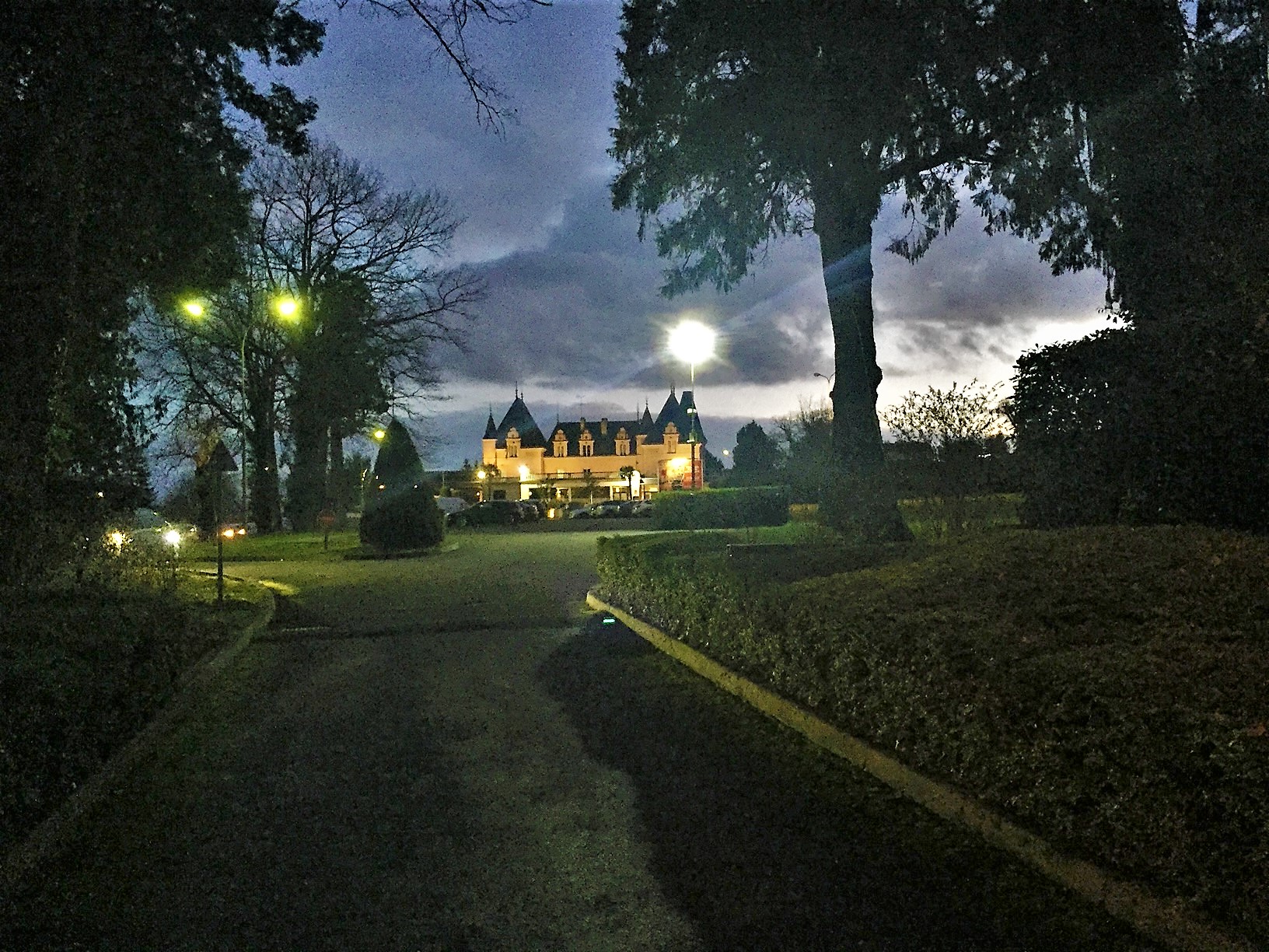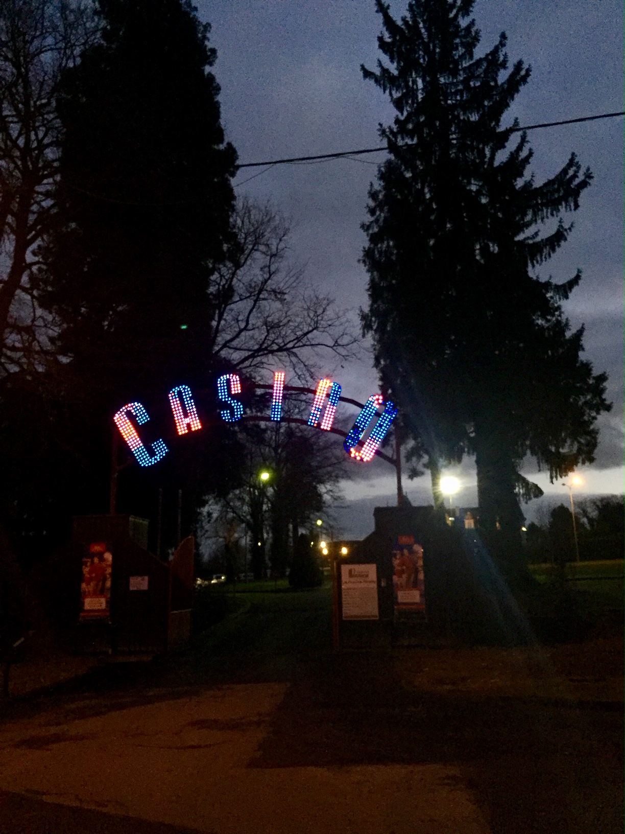 Une rue illuminée tel un chemin de Reines nous mène au château casino. Nous prenons l'allée douce rose rouge comme un tapis rouge. Passée le portique tournoyant, nous arrivons dans l'entrée calfeutrée. Nous choisissons le casino à gauche et, passé l'accueil et les bonsoirs courtois accueillants du personnel, nous nous offrons une coupe de pétillant Montlouis. La machine que nous choisissons nous octroie 100€ pour une mise de 20€. Soirée festive et inhabituelle, nous choisissons de tenter le diable qui en ricane encore pour le jackpot mais repartons bredouilles. Nous nous rendons alors dans la salle de concert à côté pour le show case de la radio forum avec qui nous avons gagné les places. Deux chanteuses et un groupe nous entraînent dans leurs différents univers et font vibrer les voix, bouger les corps, et taper des mains, quelques cinq cents personnes. Le retour à Tours sera comme le retour d'une heure trente par l'autoroute, mais sous le ciel étoilé 🌟 d'un temps froid et sec malgré la gelée.