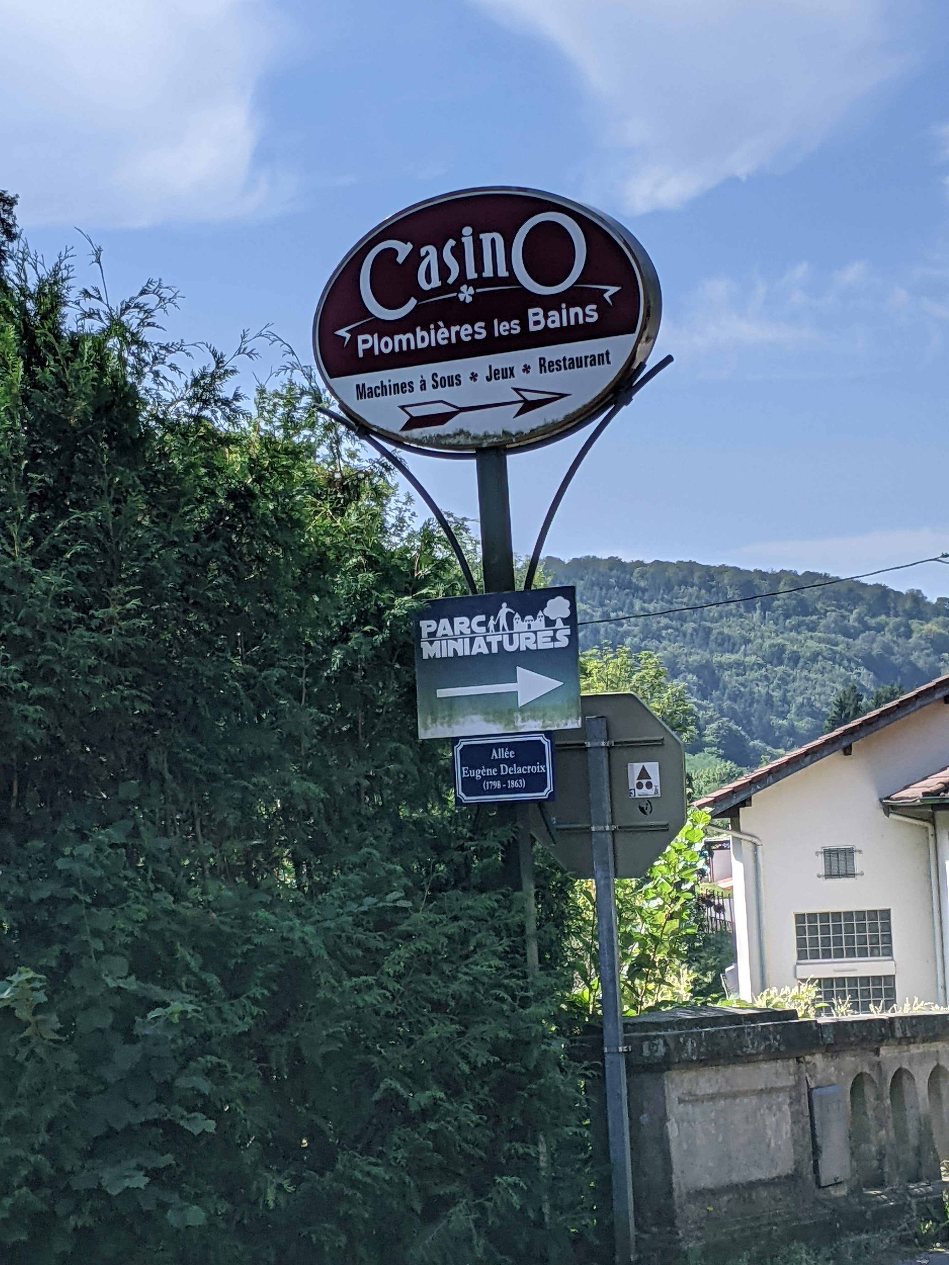 Nous ne sommes pas allés au casino mais dans le parc situé en face. Sources de Plombieres les bains Nous avons déjeuné au snack du minigolf. Acceuil très sympa, prix abordable, magnifiques arbres et belle vue