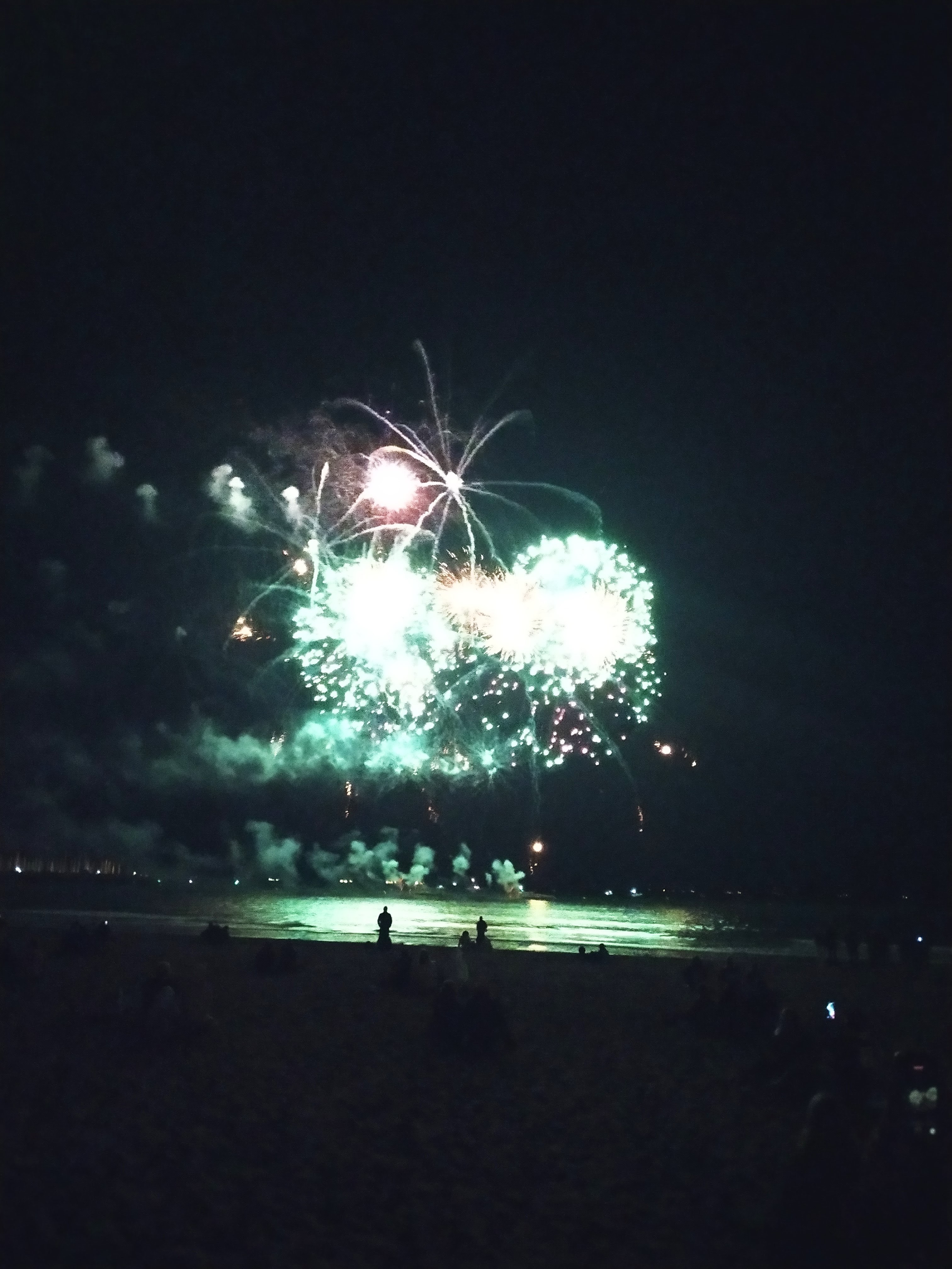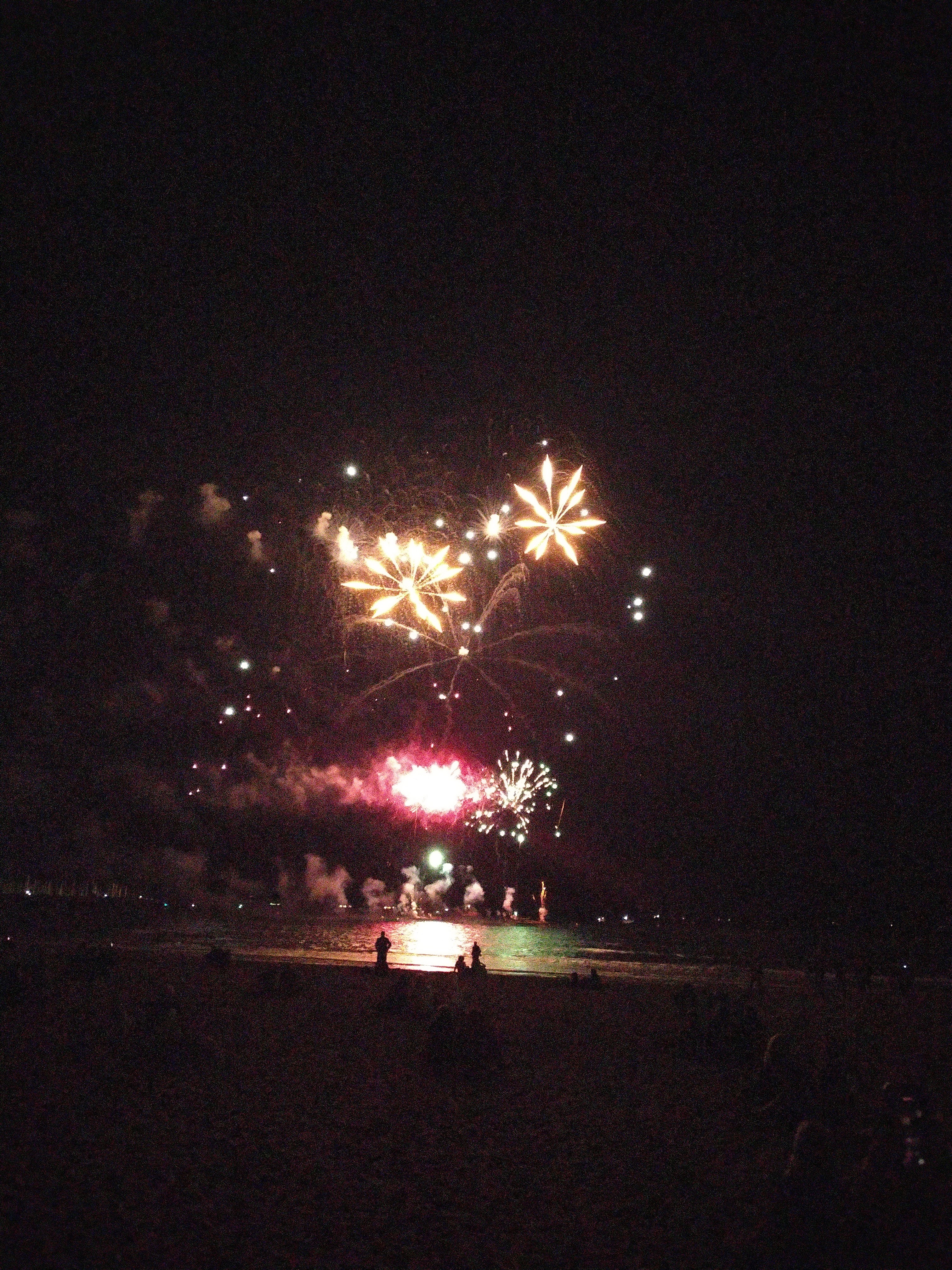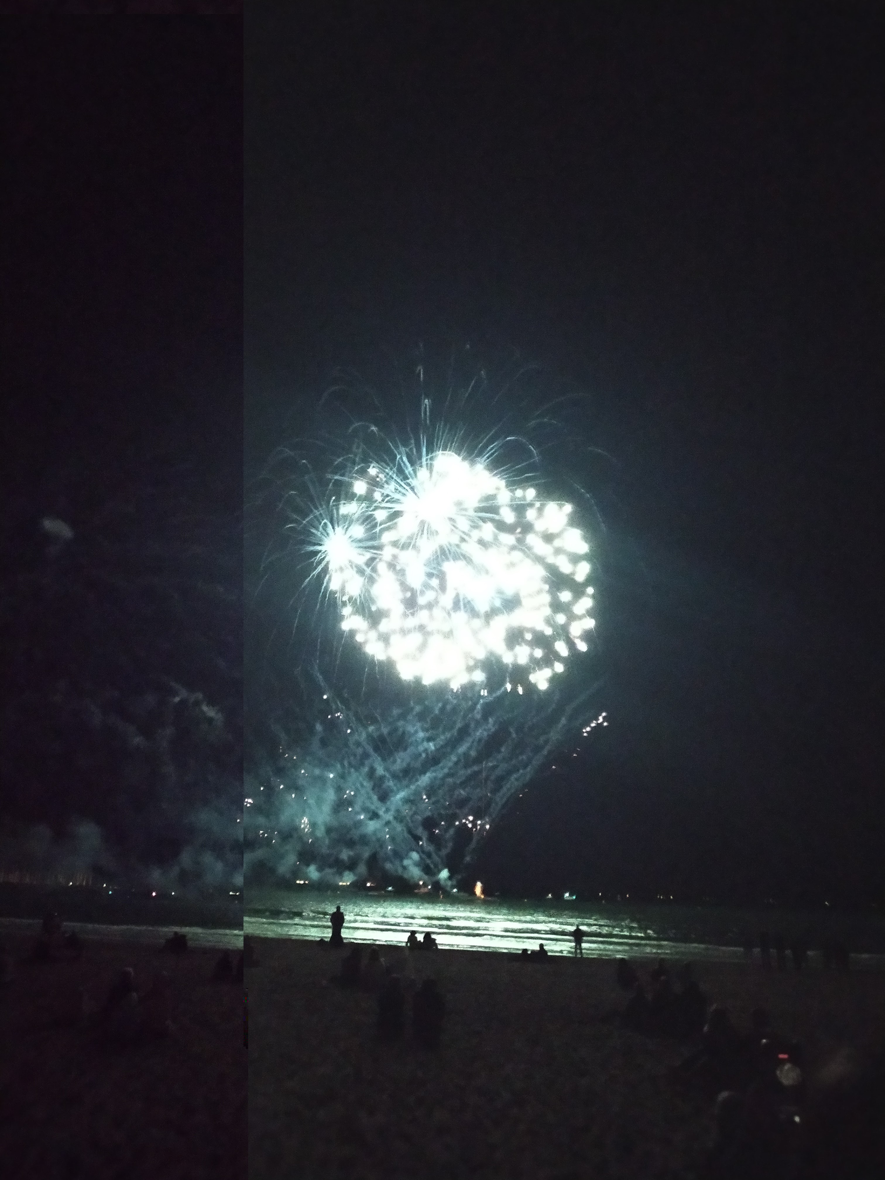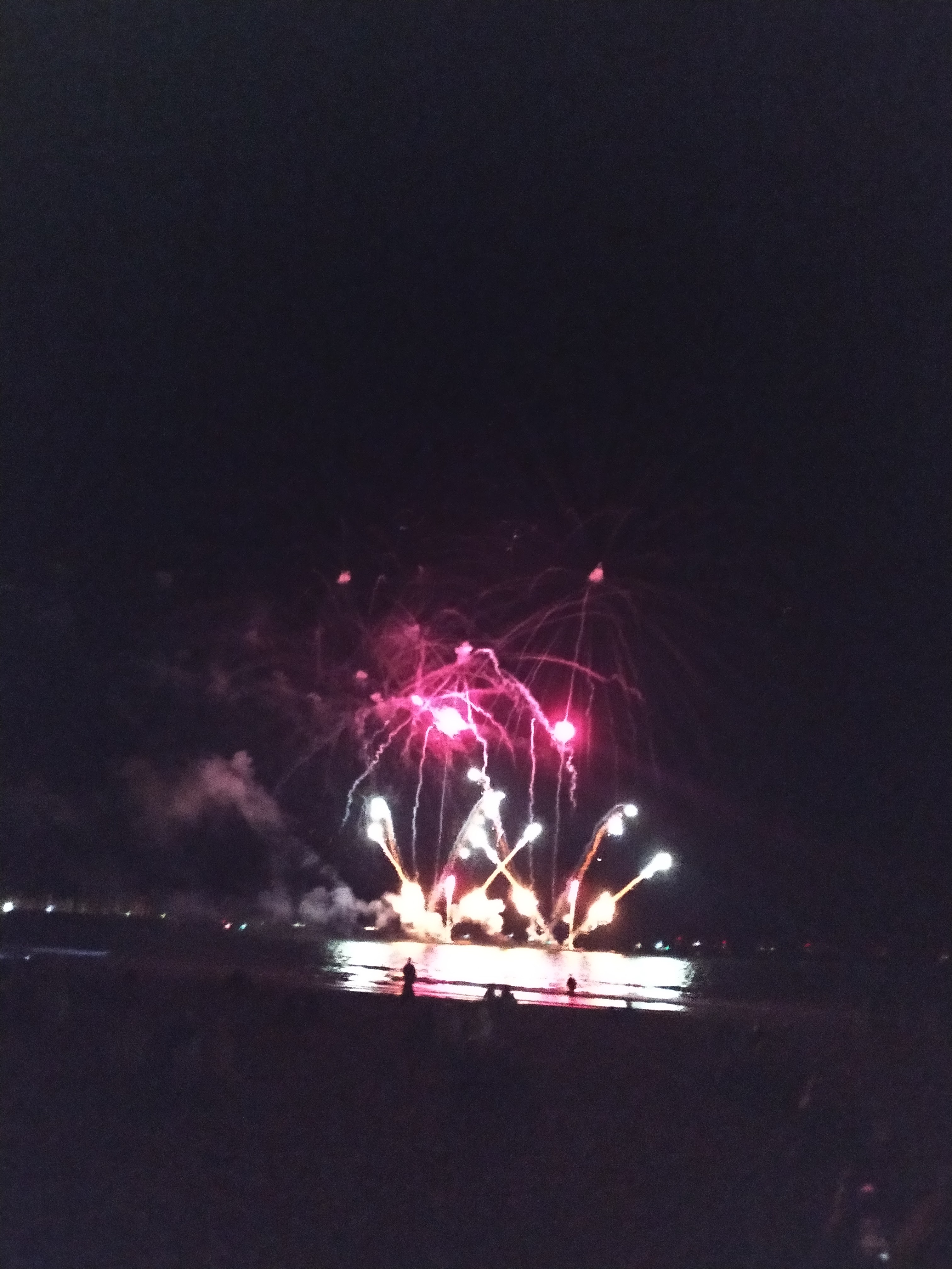 Superbe feu d'artifice tiré sur la mer, devant le casino. Après la soirée blues.