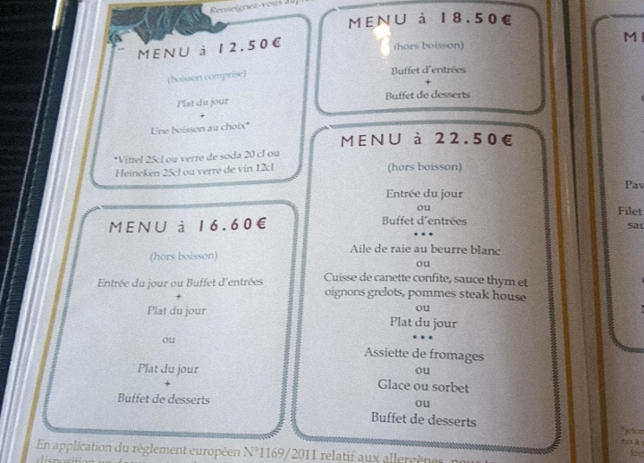 Bon accueil. Des menus à différents tarifs. Possibilité de buffets d entrées et buffet de desserts. Belle présentation des plats. Personnel disponible.