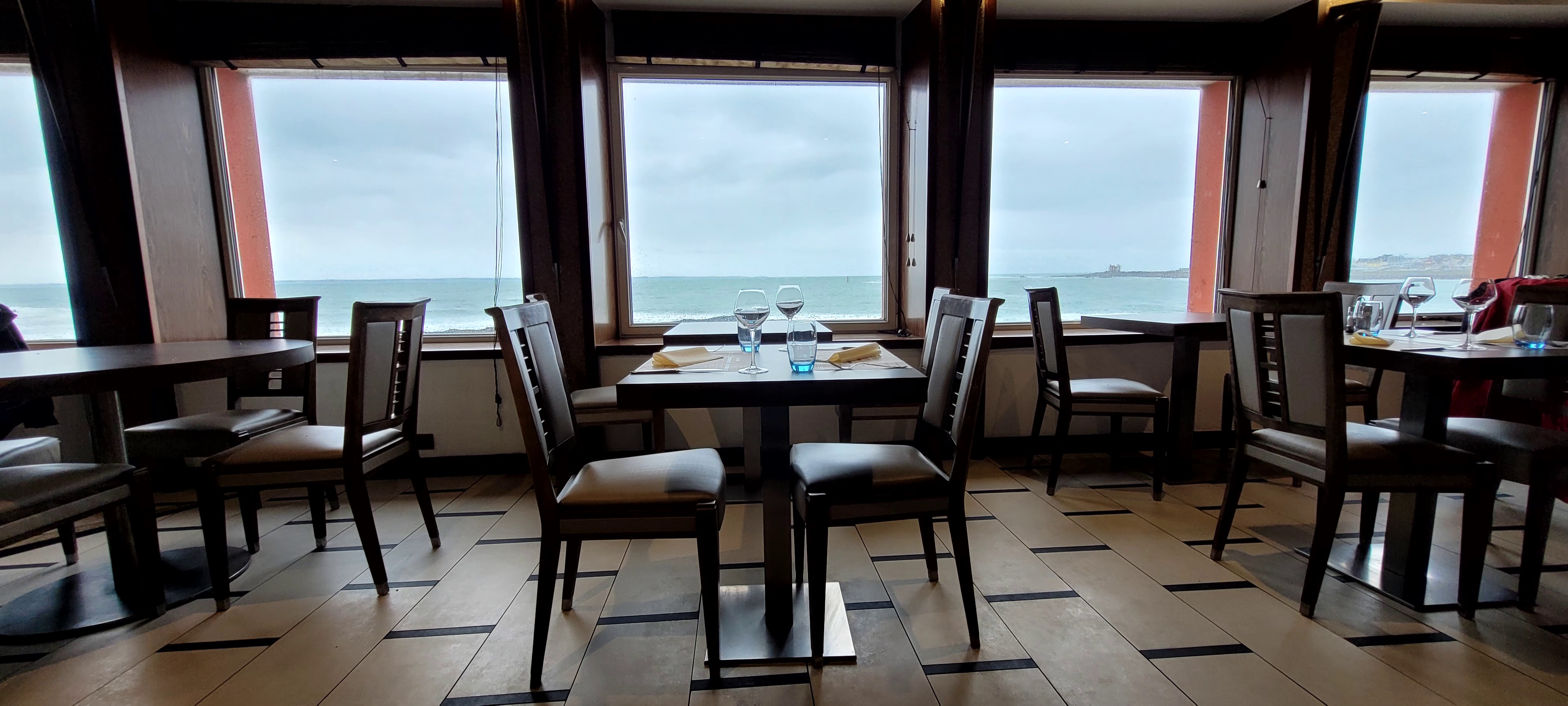 Tout parfait ! Le très élégant décor de Noël dedans, l'océan blanc d'écume dehors, le service sympathique et le repas excellent. Merci