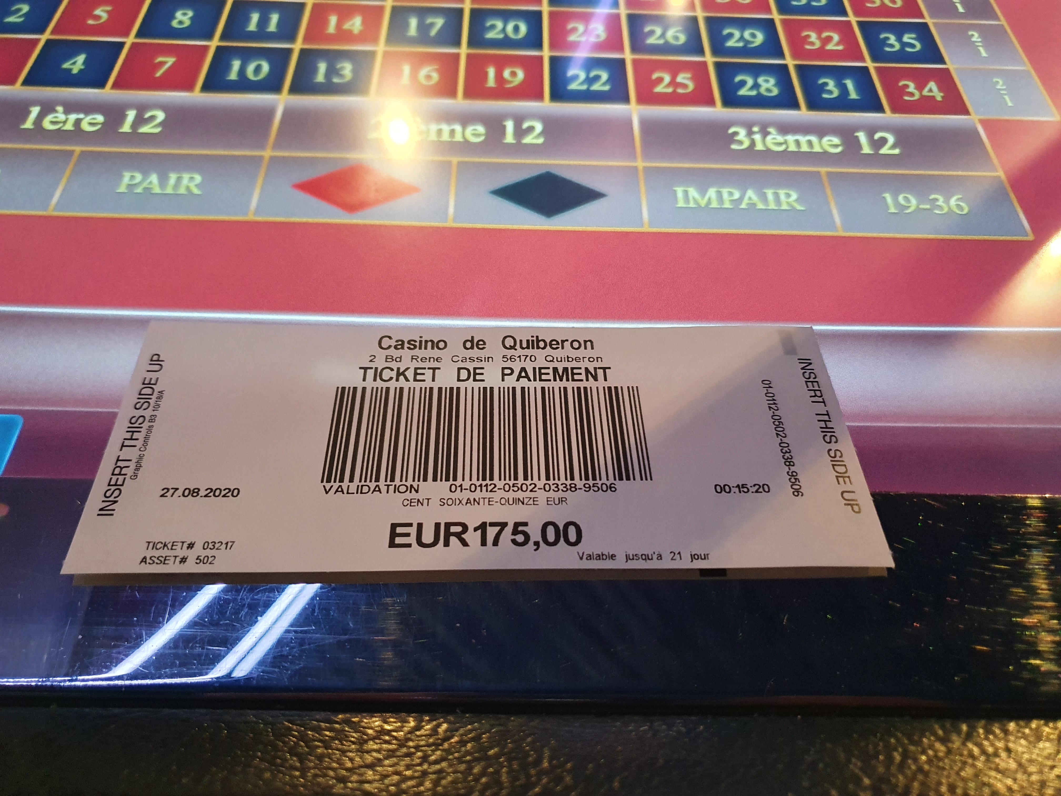 TOUT LE MONDE SAIT QUE L ON NE VA PAS AU CASINO POUR GAGNER mais pour s'amuser. 400 euros de perdu entre mon épouse et moi-même en 1 heure et 15 minutes sur des machines différentes. A la sortie, je n'ai même pas pu avoir le taux de redistribution des machines. Fin de non-recevoir de la part du responsable de la salle. Circulez il n'y a rien à voir.