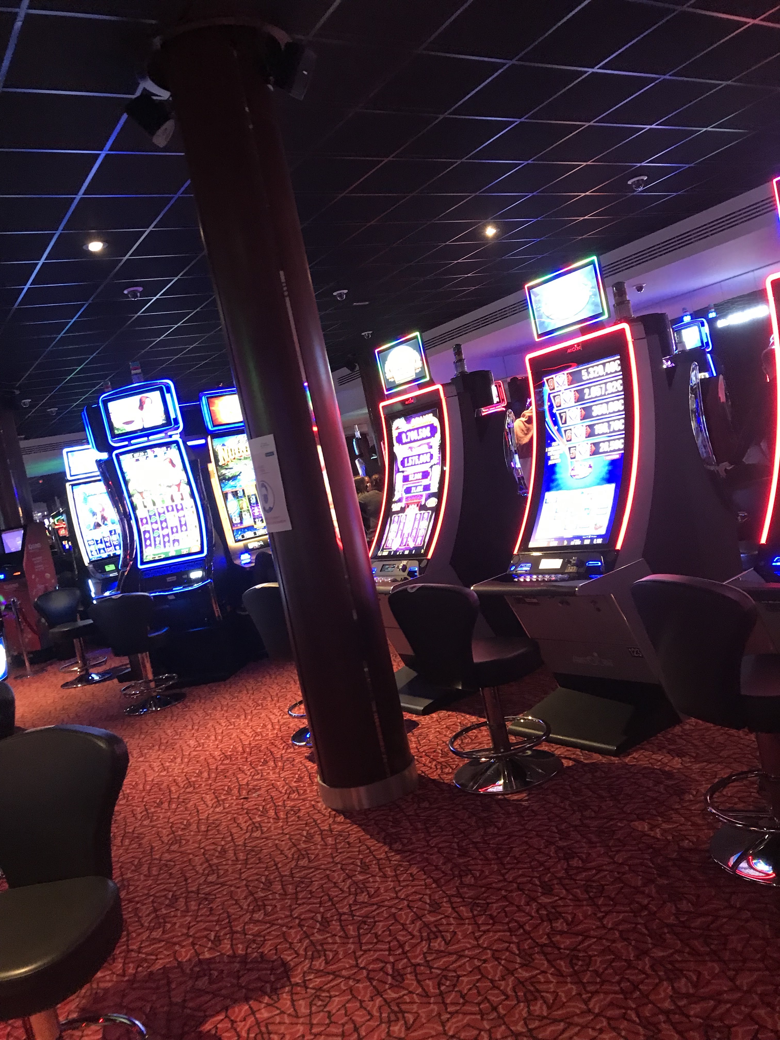 Vu de dehors, la journée, rien de particulier ou de spécialement attirant. Donc, si vous voulez en savoir plus, il faut entrer. L'accueil est plutôt sympa. On peut y boire un verre ou se restaurer dans le bar-restaurant ouvert en journée sans obligation d'entrer dans la salle de jeux. Dans la partie casino, il y a également un autre bar qui ouvre en soirée. Les machines à jouer et les jeux me semblent assez nombreux et divers, mais j'avoue que je ne suis pas du tout une habituée de ces lieux donc mon mon avis est assez limité. Les toilettes sont propres avec mise à disposition de papier pour cuvette désinfectant et ça, c'est bien ! Conclusion : perso, lieu où je resterai pas des heures et où je n'irai pas tous les jours mais qui peut faire passer un moment agréable avec des amis, par temps de pluie (ce qui n'arrive bien sûr jamais chez nous 😂)
