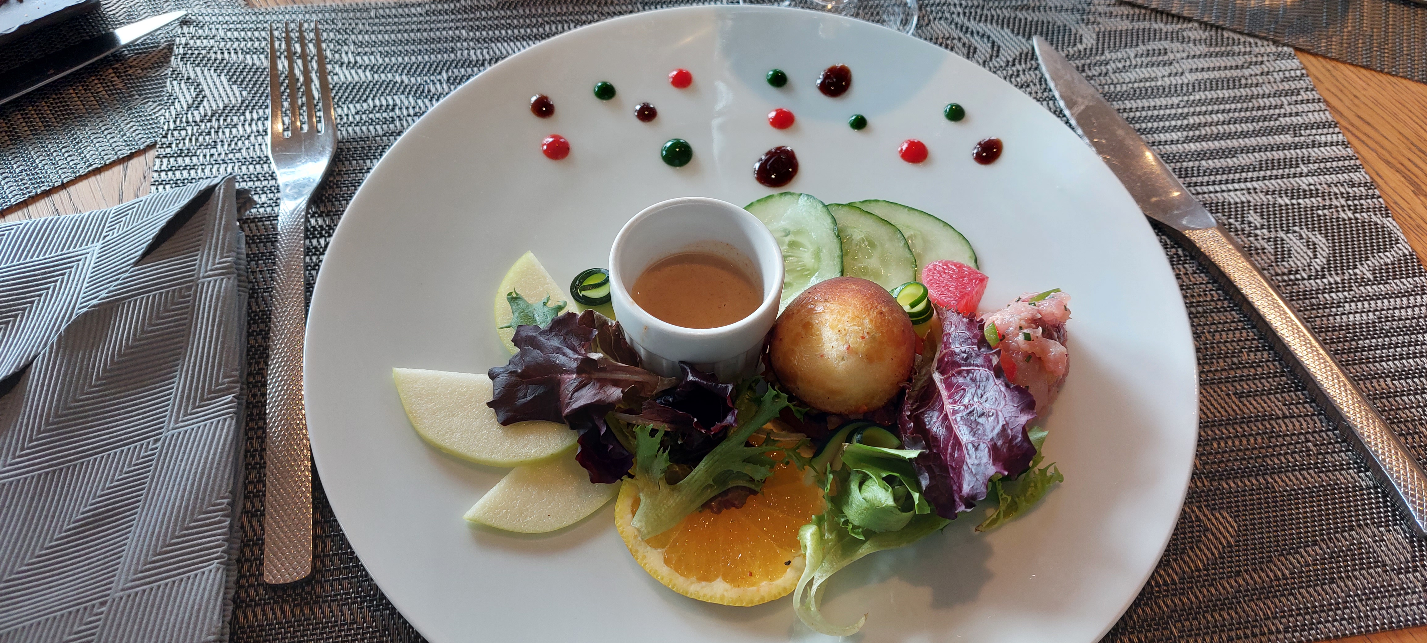 Restaurant excellent malgré l'entrée qui est arrivé un peu vite alors que l'apéro n'était pas finit ; le tartare de saumon avec sa boule de glace persil mérite le détour ainsi que l'espadon aux choux chinois citronné ; à recommander. Service souriant et compétant