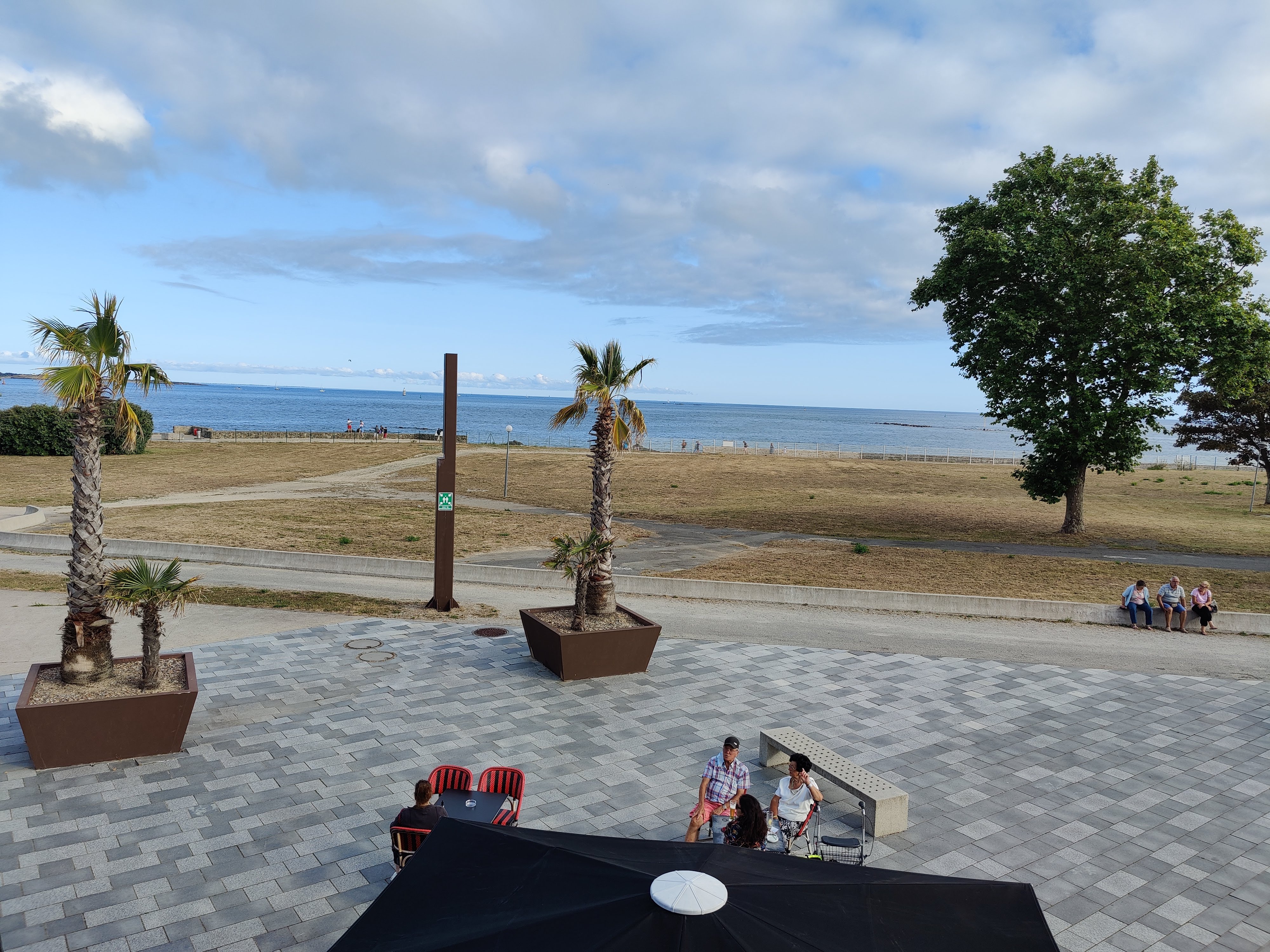 Vers 16 h nous voulons boire un verre en terrasse .. Nous demandons au serveur si il est possible d ouvrir le parasol.. Réponse de sa part :il fonctionne pas sinon on l aurait ouvert ... D un ton peu aimable genre j'ai pas envie de bosser .. Nous somme DC partis en espérant que les parasols fonctionnent en décembre mais surtout que le serveur aille en formation accueil client ...